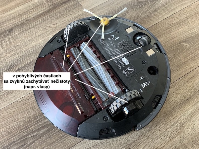 - zachytávajúce sa nečistoty (napr. vlasy) na pohyblivých častiach vysávača ako sú kolieska a bočná kefka – tomuto problému sa však nevyhnete ani pri iných modeloch