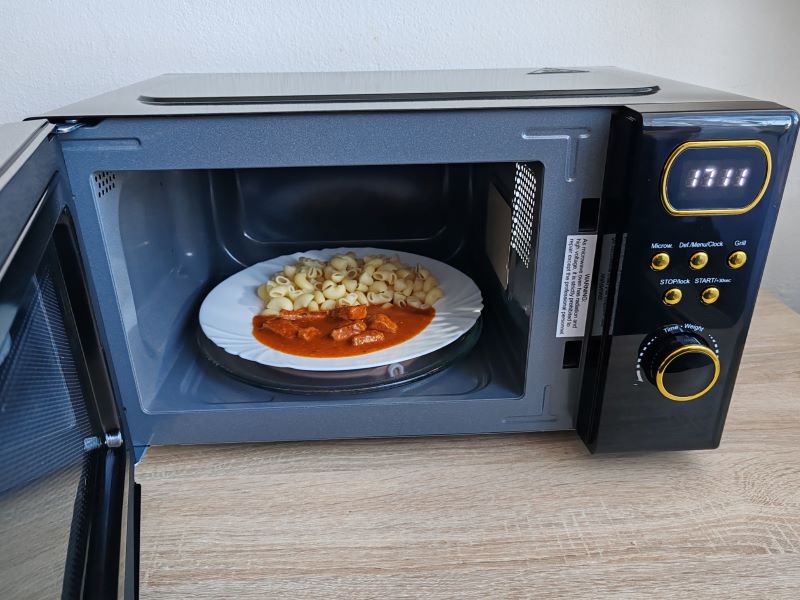 Výkon 800 W v pohode zabezpečí rýchle zohriatie jedla, polievok aj „kakauka“. K dispozícii je 5 úrovní výkonu, čo vám umožní prispôsobiť ohrev podľa potreby. U nás to „jede“ na tom najvyššom (v podstate bez výnimky). Doplnkovou funkciou je potom gril s výkonom 700 W. Nečakajte výkon ako z klasického elektrického grilu (no lebo to nie je gril), no na dopečenie lasagní, zapekanej zeleniny alebo na chrumkavú vrstvu syra je to príjemný bonus. Čas si viete nastaviť v rozpätí 0:10 až 60:00.