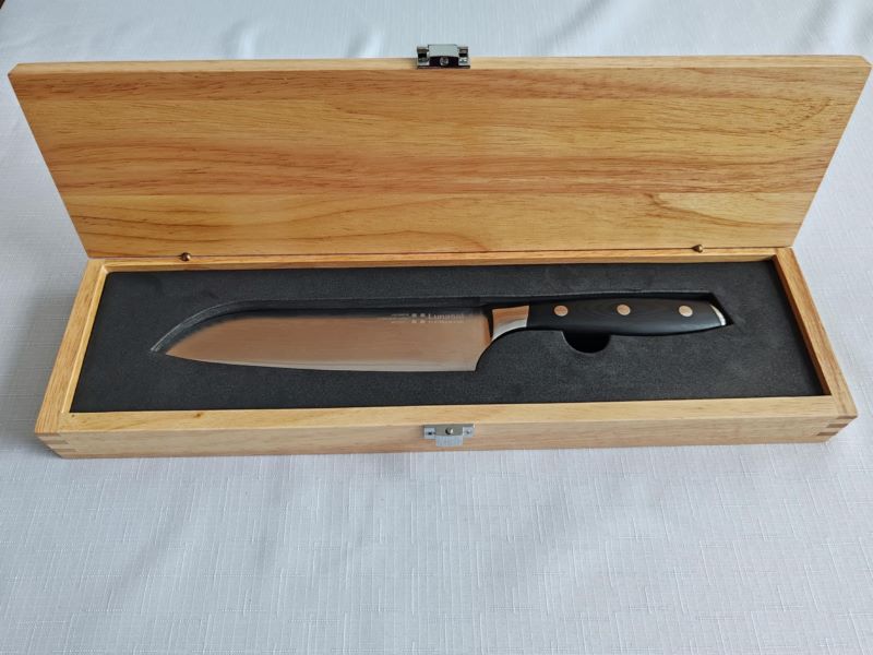 Prekvapenie v elegantnej drevenej krabičke – môj nový santoku z damaskovej ocele