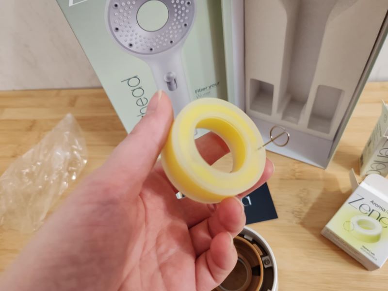 - Balenie obsahuje: samotnú sprchovú hlavicu, 1× ACF filter a 1× aroma krúžok