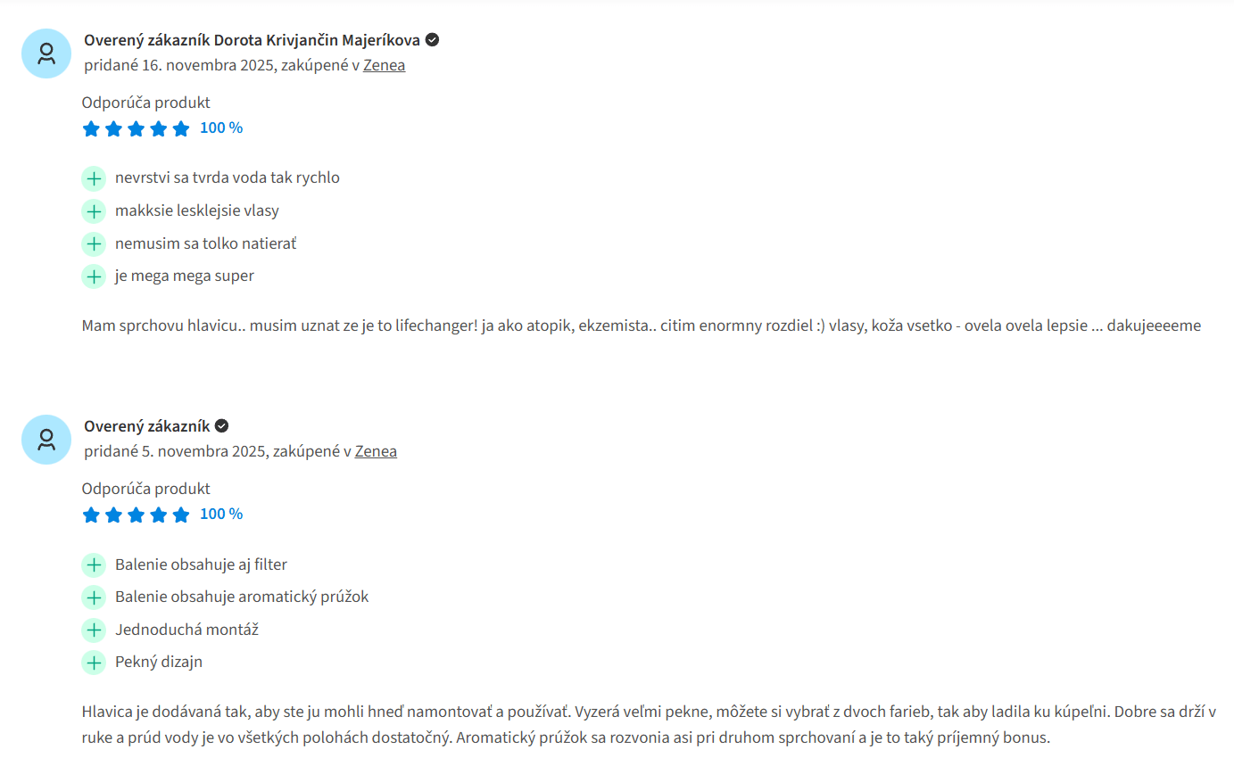 A ako pre zaujímavosť vyzerá hodnotenie obchodu na Heureke? Eshop Zenea tam odporúča v čase písania našej recenzie 97% všetkých zákazníkov a má až 4,8 hviezdičiek z 5. To je naozaj výborné hodnotenie. Ešte dodám, že ich produkt je tam TOP 1 spomedzi všetkých sprchovacích hlavíc.